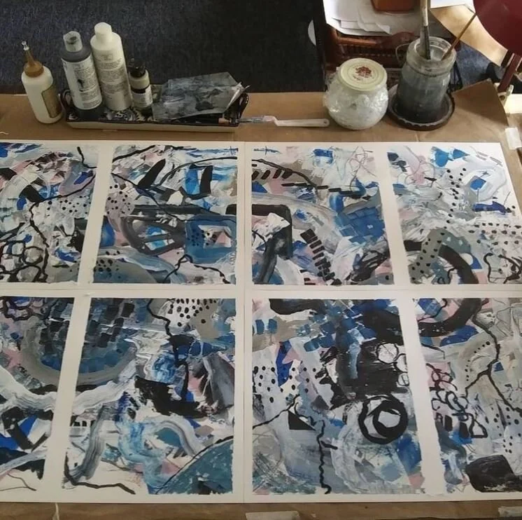 Many of Debbie’s pieces are created using self-made materials - paintbrushes made from beach debris, paper printed using textures found on her 5-acre beach property.